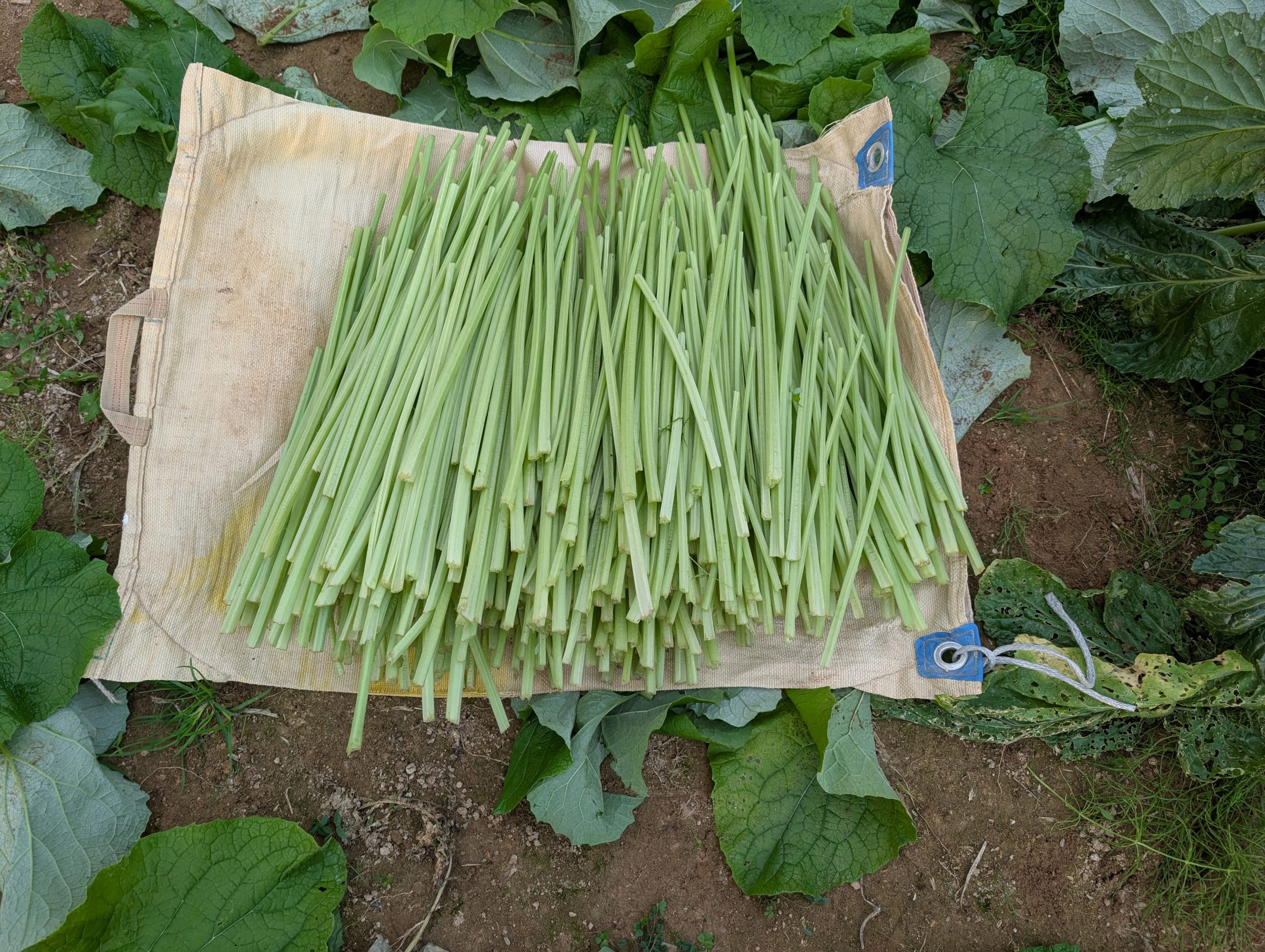 さてこの葉ごぼう、どのように出荷したものかと悩んだが、フキと同じように葉柄だけを出荷することとした。インターネット情報では葉も食するともあるが、荷姿が問題なことや消費者のなじみが薄いことなどを考慮した。